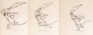 Close up of the Timothy Q. Mouse original production animation drawings.